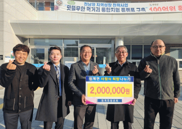 최상필 청계면장은 “평소에도 관내 소외계층을 위한 꾸준한 봉사활동을 이어가고 있는 청계면 청년회에서 따뜻한 정성을 모아 후원금 기탁을 해주셔서 감사한 시간이었다”며 “기탁해주신 후원금은 관내 저소득 취약계층을 위해 소중히 사용하겠다”고 말했다.