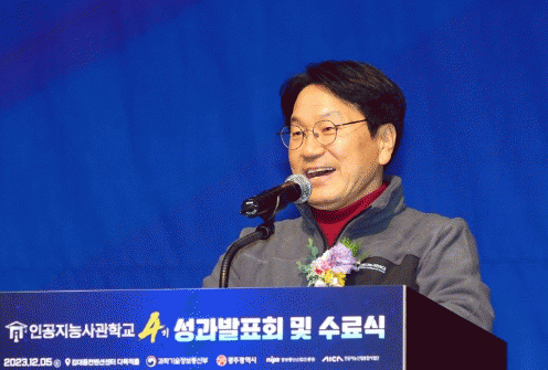 이날 행사에는 강기정 시장을 비롯해 정수진 정보통신산업진흥원 단장, 김준하 인공지능산업융합사업단장, 인공지능 기업 대표, 제4기 수료생 등 300여명이 참석했다.