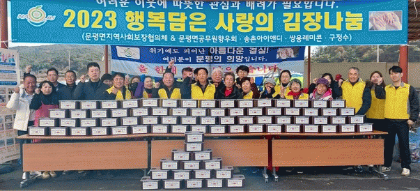 임윤식 문평면장은 “사랑과 정성의 손맛을 담아 김장에 참여해준 지사협 위원들과 따뜻한 나눔을 전해준 4개 단체 등에 감사드린다”며 “연말연시 소외된 이웃이 없도록 복지사각지대 발굴과 지원에 최선을 다하겠다”고 밝혔다.
