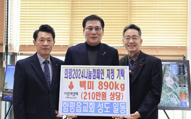 또한 함평읍교회(목사 박광석)에서 백미 890kg, (사)전국한우협회 함평군지부에서 한우곰탕(600ml) 1,000개를 군에 전달하며 훈훈한 기부를 이어갔다.