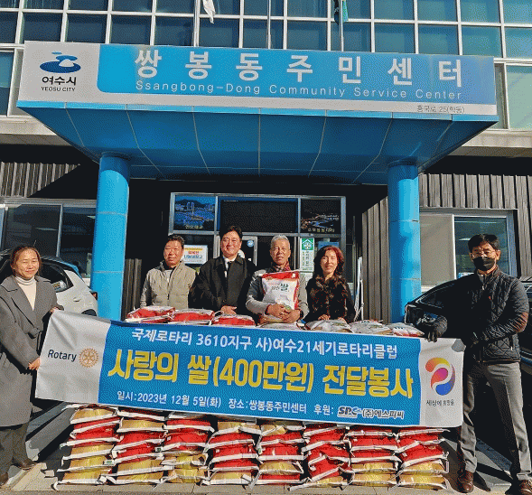 김인보 쌍봉동장은 “어려운 이웃들에게 관심을 갖고, 따뜻한 정을 베풀어 주신 최준태 대표님과 국제로타리 3610지구, 사)여수21세기로타리클럽에 감사드린다”며 “소외된 이웃이 없도록 살기 좋은 마을 만들기에 더욱 힘쓰겠다”고 말했다.