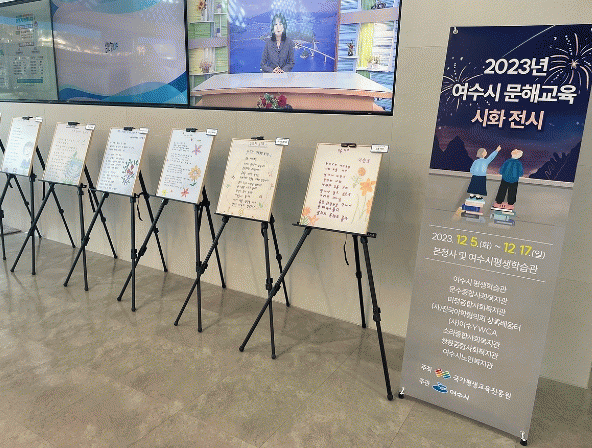 문해교육에 대한 열정에 공감하고 문해교육의 중요성을 널리 알리기 위해 기획된 이번 시화전은 ‘2023년 전남 성인문해교육 시화전’ 수상작 17점을 포함한 20점의 작품을 선보인다.