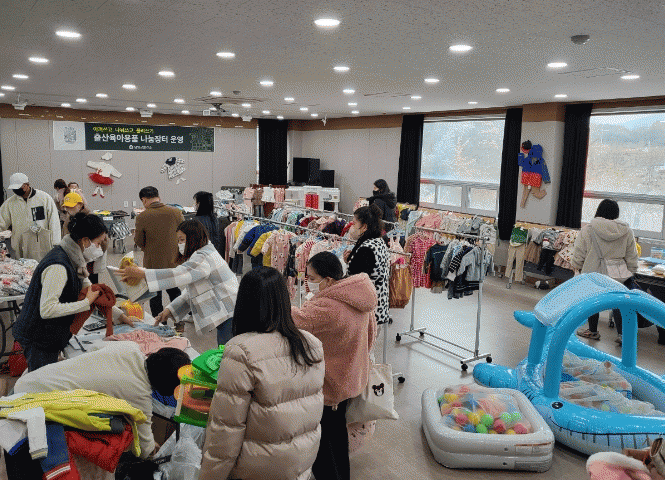 나눔장터는 출산가정과 임산부를 대상으로 경제적 부담을 덜어주고자 사용하지 않는 육아용품을 기증받아 운영한다.