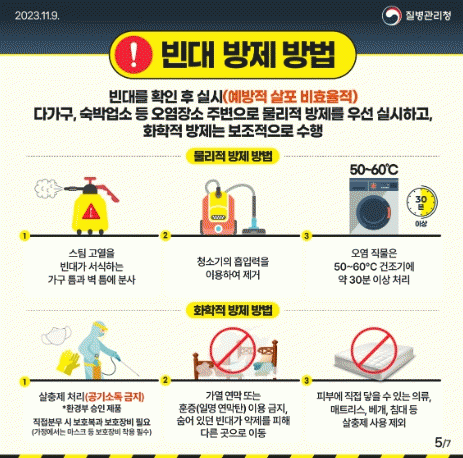 합동 대책반은 숙박업소·목욕탕, 의료기관, 학교 기숙사 및 외국인 근로자 숙소 등 소관 시설 담당 11개 부서로 구성됐으며, 빈대 발생 우려가 있는 시설을 점검하고 빈대 예방 및 발견 시 대처법 안내 등 확산 방지에 대응하고 있다.
