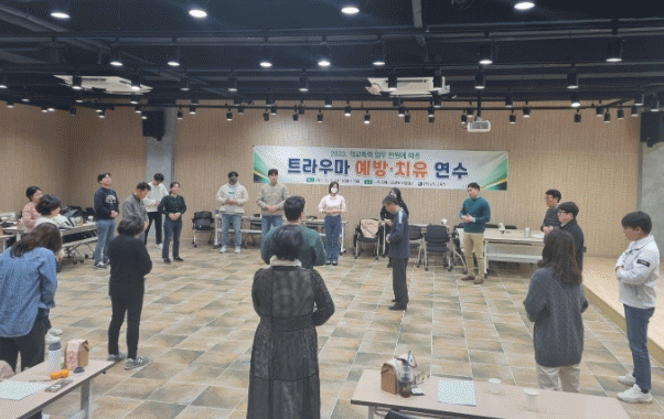 이날 연수에서는 김정주 광주트라우마센터 팀장이 △ 트라우마의 정의 △ 트라우마 증상 △ 트라우마 치유, 어떻게 할 것인가 등을 주제로 시연과 실습 교육을 진행했다.