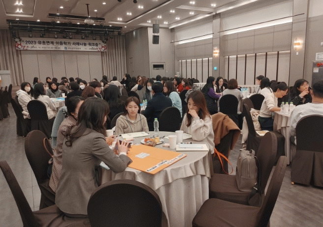 행사는 지난 1년간 ‘유·초연계 이음 교육’의 성과를 알고자 유치원과 초등학교 2곳의 사례 발표, 운영 교원간의 분임 토의 중심으로 이뤄졌다.