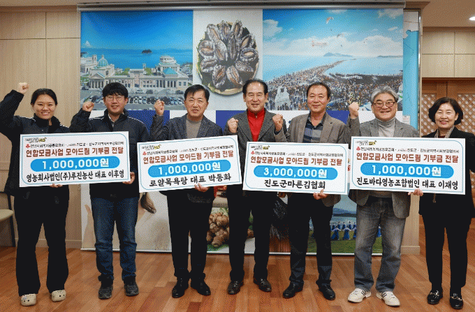 진도군마른김생산자협회 이재영 회장은 “연말모임 등을 통해 마른김생산자협회 회원들과 함께 이웃 사랑 실천에 뜻을 모았다”며 기부금을 전달했고, ㈜루진농산 이후영 대표는 “고향 진도에서 농업경영을 하며 지역민을 위해 뜻깊은 나눔을 실천하고자 기부에 참여했다”고 말했다.