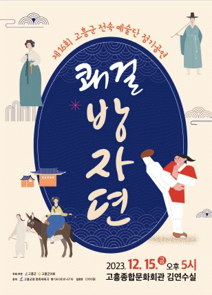 군 관계자는 “바쁘게 달렸던 2023년을 보내고 한 해의 마무리를 이번 마당극 정기 공연을 통해 웃으며 마무리하는 공연”이라며, “흥겨운 고흥 국악을 즐기고 희망찬 2024년을 맞는 계기가 되길 바란다.”라고 전했다.