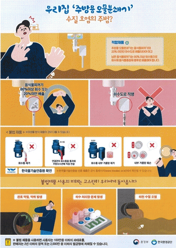 음식물쓰레기가 주방용 오물 분쇄기 불법제품을 통해 배출되면 하수관로를 막아 악취 유발과 하천수질오염, 하수처리장 처리 효율저하 등 수질악화를 초래할 우려가 있다.
