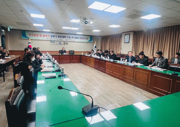 최종보고회는 김순호 군수를 비롯한 간부 공무원 등 30여 명이 참석한 가운데 경상국립대교 김필주 교수가 연구용역 결과를 발표하고 이에 따른 의견 교환 및 질의응답 순으로 진행됐다.