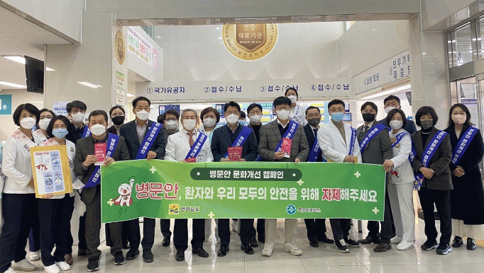 병문안 문화개선 캠페인은 ‘확인하고, 자제하고, 지켜주세요’ 라는 3대 원칙을 중점으로 안전한 병문안 문화를 홍보하는 사업이다. 이 캠페인을 통해 시민들이 자발적으로 병문화 문화개선에 동참할 수 있는 사회적 분위기를 조성는데 목적이 있다.
