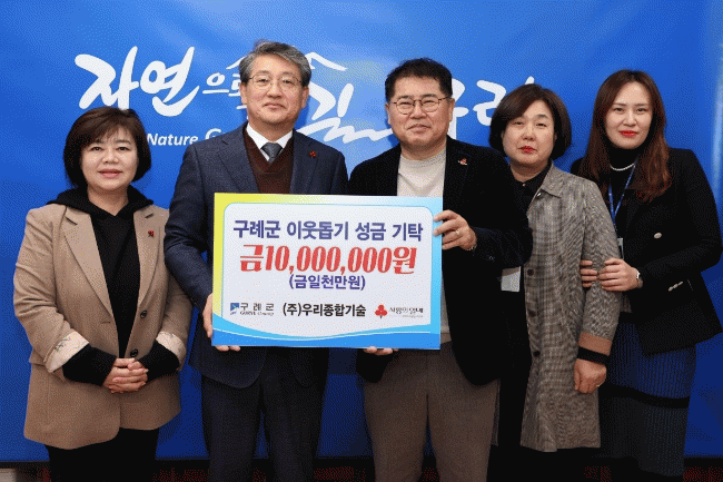 김순호 군수는 “매년 따뜻한 이웃 사랑으로 우리 사회에 나눔 문화를 확산해 주신 우리종합기술에 감사드리고, 보내주신 따뜻한 마음과 배려가 어려운 이웃에게 큰 희망과 용기를 전해 줄 것”이라고 말했다.