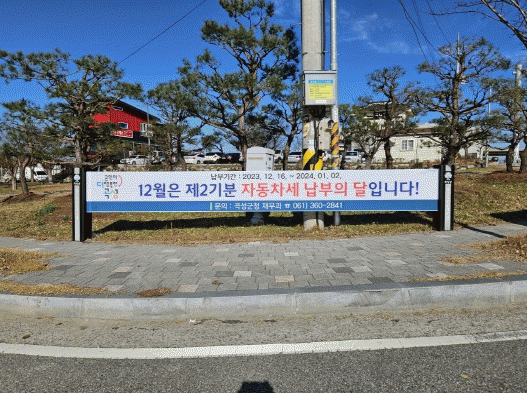 한편 곡성군에서는 자동차세 징수율을 높이는 한편, 납세자의 가산금 부담을 줄일 수 있도록 11개 읍면에 납부 홍보 현수막을 설치하는 것은 물론 납기 전 납부 안내 문자 발송, 마을종합방송 등을 통해 적극적인 홍보를 실시하고 있다.