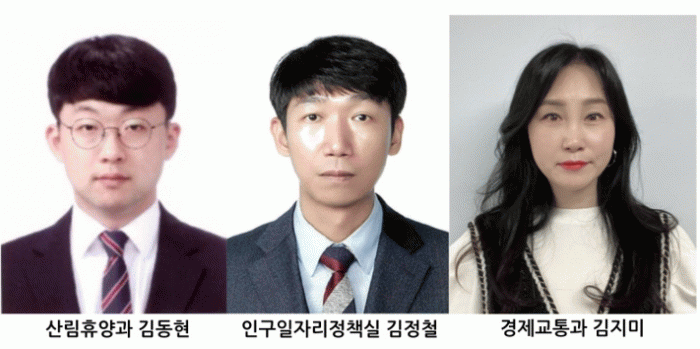 최종 심사 결과, 경제교통과 김지미 주무관, 산림휴양과 김동현, 인구일자리정책실 김정철 주무관이 선발됐다.