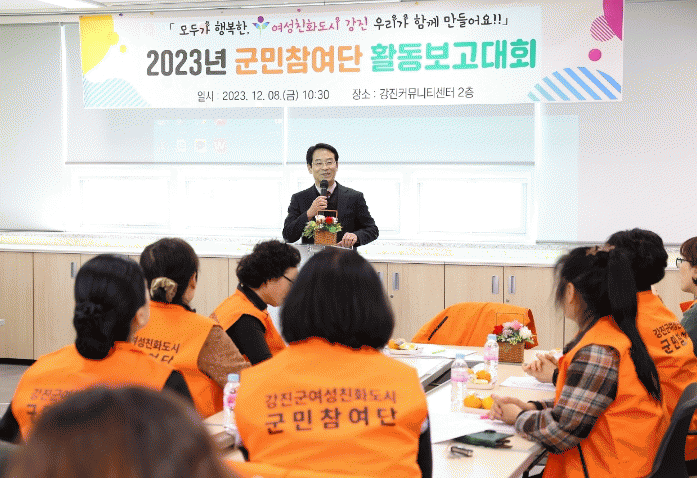 강진원 강진군수는 “강진군 군민참여단 여러분의 왕성한 활동으로 여성친화도시 강진이라는 브랜드가 더욱 가치 있게 빛날 수 있게 된 것에 감사드린다”면서 “앞으로도 여성친화도시 지정이 지속될 수 있도록 군민참여단과 강진군이 함께 노력하겠다”고 말했다.