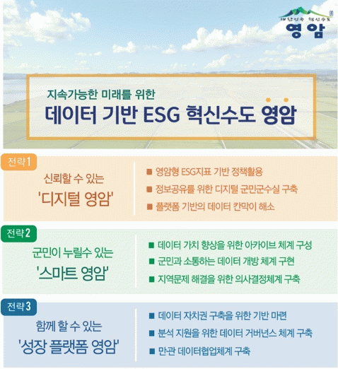 이에 따라 ‘영암형 ESG 지표’ 개발을 주축으로 한 데이터 플랫폼 구축을 내세워 다른 지자체와 차별성을 부각했고, 이점이 심사위원들에게 높은 점수를 받은 것으로 알려졌다.