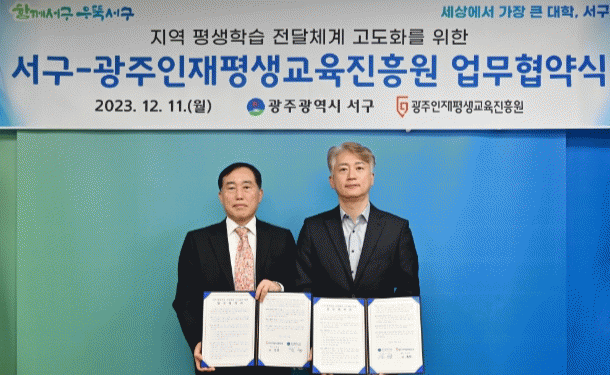 서구는 올해 자치구에 ‘대학’의 개념을 도입해 교육프로그램을 체계화하고 근거리에 학습공간을 조성해 시민의 지속적인 성장을 지원하는 서구만의 평생학습 대표 브랜드 사업 ‘세상에서 가장 큰 대학, 서구’를 출범시켰으며, 주민들이 언제, 어디서나 학습할 수 있는 환경을 만들기 위해 이날 광주인평원과 협약을 진행했다.