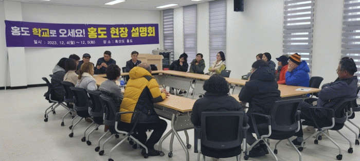 흑산도 홍도분교 전학(입학)을 희망하는 12세대를 선발하여 올해 11월 23일부터 11월 24일까지 1차 현장 설명회를 계획했으나 무산되고, 바로 다음 주 11월 28일부터 29일까지 2차 계획도 마찬가지로 태풍주의보 발효 때문에 연기됐다. 그리고 마침내 이번 12월 4일부터 12월 5일까지 3번째 도전 끝에 현장 방문과 설명회를 마무리할 수 있었다.