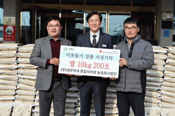 대우미곡종합처리장농업회사법인은 1999년에 설립돼 곡물 도정 등을 하는 식품가공업체로, 2021년에도 쌀·보리 혼합곡 200포를 지원하는 등 지역사회 나눔 활동을 이어오고 있다.