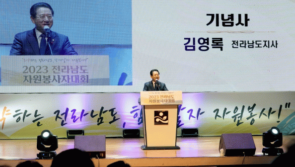 김영록 지사는 기념사에서 “2023년은 자원봉사자의 해라고 해도 과언이 아닐 정도로 자원봉사자의 헌신과 참여가 많았다”며 “전남만의 다양한 경쟁력을 바탕으로 반드시 세계로 웅비하는 대도약 전남 행복시대를 이뤄내겠다. 이를 위해 더욱 힘을 모아달라”고 당부했다.
