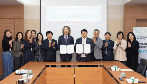 13일 시교육청에 따르면 이번 업무협약은 지역과 학교 문화예술 교육 활성화를 위해 지속 가능한 협력 체계를 만들기 위해 마련됐다. 주요 내용은 ▲교육공동체(교사, 학생, 학부모) 예술 감수성 제고 ▲문화예술 행사 연계 추진 협력 ▲사업 운영을 위한 시설 사용 및 인력풀 활용 ▲학교문화예술 활성화를 위한 지역 협의체 구성 ▲양 기관 사업에 대한 상호 홍보 및 지원 ▲기타 양 기관의 교류 및 공동협력 등이다.