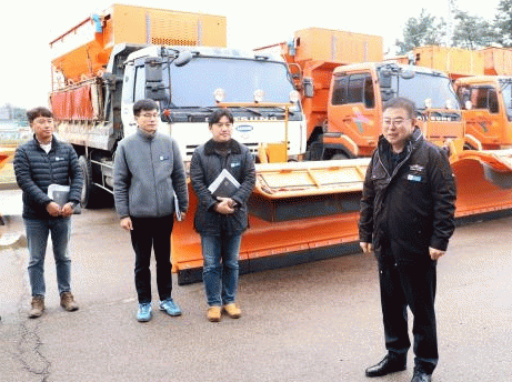 금년 제설장비는 15톤 덤프트럭 6대 및 1톤 트럭 1대, 읍면별 트랙터 76대 등 예년보다 대수를 늘려 준비했고, 제설자재는 친환경 고상제 1910톤, 액상제 9만리터 등 동절기(23. 12.부터 24. 2.) 필요 자재량 대비 90%를 미리 확보했다.