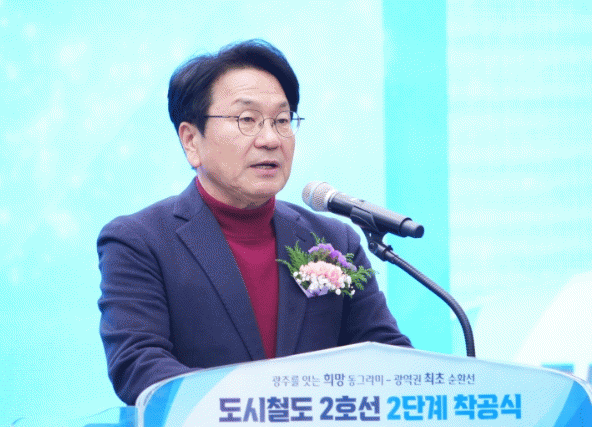 강기정 광주시장은 “드디어 도시철도 2호선 2단계를 착공하게 됐다”며 “광주는 오늘, 자가용 중심도시에서 대중교통 중심도시로 전환이라는 큰 걸음을 내딛는다”고 밝혔다.