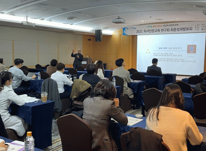 박준 미래교육과장은 “이번 독서인문교육 연구회 최종성과발표회는 학교 현장의 독서인문교육에 대한 관심을 높이고, 교원의 연구 역량을 향상시키는 중요한 자리였다.”며 “정책 연구를 통해 독서인문교육이 학교 현장에서 내실 있게 이뤄질 수 있도록 내년에도 지원을 아끼지 않겠다.”고 말했다.