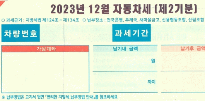 한편, 12월 자동차세는 1년에 2회(6월, 12월) 부과되는 세목으로 이번 제2기분 자동차세는 2023년 7월 1일부터 12월 31일까지 소유한 기간에 대한 금액이며, 연납으로 미리 납부한 경우에는 부과되지 않는다.