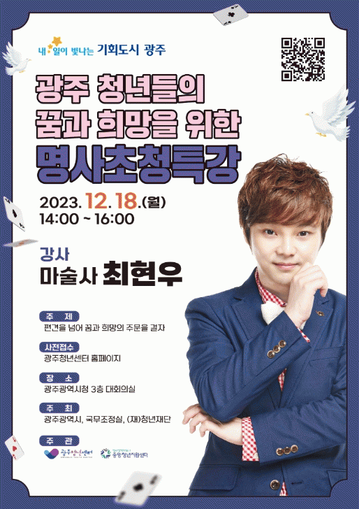 특강 참여를 희망하는 청년은 광주청년센터 홈페이지에 사전접수하면 된다. 사전 접수자 중 추첨을 통해 최현우 마술사의 친필사인 책자를 제공한다.