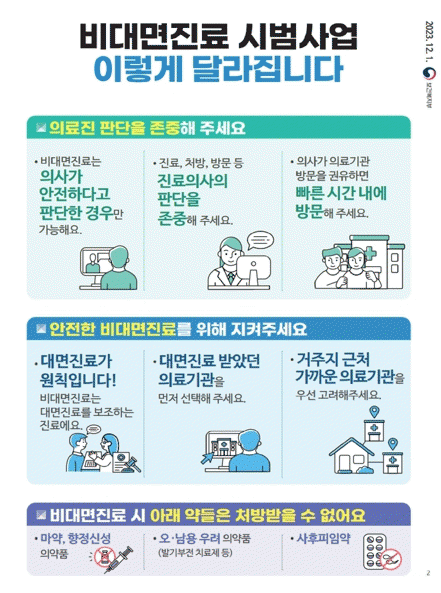다만 오남용 우려가 큰 의약품 관리 및 처방전 위변조를 방지하기 위해 처방전은 의료기관에서 약국으로 직접 전송하고, 의약품은 약국 방문 수령이 원칙이다.