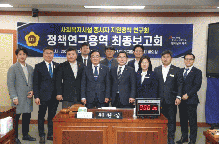 이번 보고회는 박종원 대표위원(더불어민주당, 담양1)을 비롯해 연구단체 위원, 전남도 사회복지과, 정책연구용역 수행기관인 세한대학교 교수진이 참석한 가운데 진행됐다.
