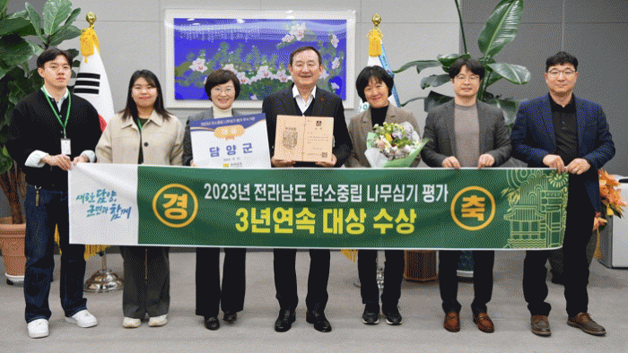 탄소중립 나무심기 평가는 도내 22개 시군 대상 조성 분야인 ▲탄소중립 나무심기 실적 ▲숲 조성 참여도 ▲숲속의 전남 협의회 운영, 관리 ▲숲 사후관리 ▲민간참여 등 3개 분야 9개 지표의 평가를 진행했으며, 담양군은 3년 연속 우수기관으로 선정되며 녹색정원도시 실현 선도 지자체임을 다시 한번 입증했다.