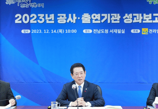 김영록 전남도지사는 “공공기관은 도정을 함께 이끌 협력 파트너”라며 “올 한 해 각자의 분야에서 도민 행복을 위해 최선의 노력을 다해준 공사·출연기관에 감사하다”고 말했다. 이어 “2024년은 전남도가 새로운 미래 100년을 바라보며 세계를 향해 비상해야 할 시기”라며 “각 기관에서도 새로운 비전 마련과 글로벌 경쟁력을 강화하길 바란다”고 당부했다.