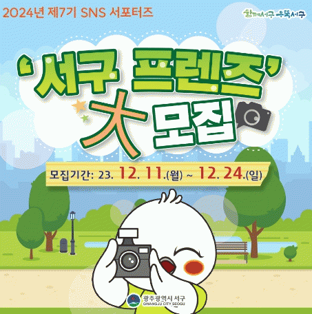 서구 SNS서포터즈는 2018년부터 ‘서구프렌즈’라는 이름으로 활동하고 있으며, 매년 공모를 통해 활동가들을 선정하고 있다. 서포터즈는 주민의 관점에서 서구의 행사, 축제, 명소 등 다양한 분야의 현장 취재를 통해 생동감 있는 정보를 전달하는 온라인 홍보대사 역할을 담당한다. 특히 올해 서포터즈들은 봄?가을 힐링음악회, 양동통맥축제, 서창억새축제 등을 생생한 사진과 영상, 글로 소개하며 서구 이미지 제고에 기여했다.