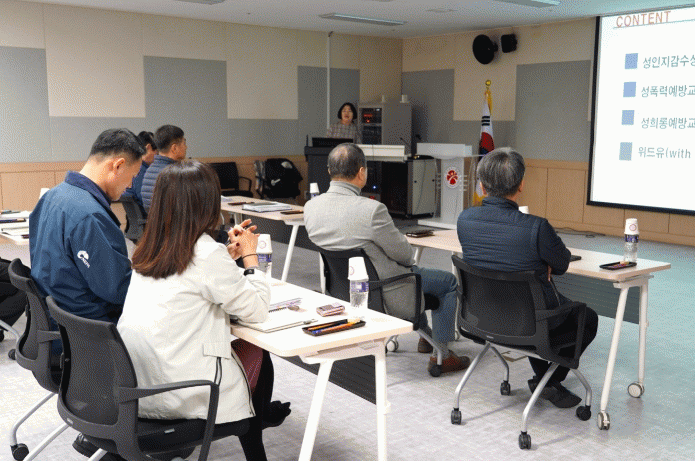 이번 교육은 폭력예방과 성희롱, 성매매, 성폭력, 가정폭력 등 4대 폭력에 대한 예방교육이자 양성평등기본법, 성매매방지 및 피해자보호 등에 관한 법률 등 4개 법령에 따른 법정의무교육으로 고위직의 양성평등 의식을 고취하고 건전한 조직문화 조성을 위해 마련됐다.