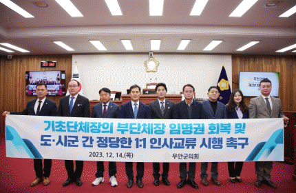 특히, 무안군의회는 임동현 부의장이 대표 발의한 자치단체장의 부단체장 임명보장 및 인사교류 추진 시 1 : 1 상호교류 추진 촉구 건의안을 만장 일치로 채택하고, 임윤택 행정문화복지위원장은 5분 자유발언을 통해 무안군 생활임금 제도 도입 및 필수 노동자 지원체계 마련을 촉구했다.