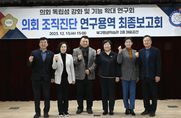 한편 지방자치법 개정 이후 지역 주도의 지방의회 권한 및 의회 사무기구의 기능 확대를 위한 조직 및 인사 등 의회사무기구 전반의 연구를 진행하고자 지난 5월 손혜진 의원을 비롯해 김건안·김귀성·이숙희·최기영 의원이 뜻을 모아 발족한 ‘의회 독립성 강화 연구회’는 집행부 업무보고 청취를 시작으로 전문가 초청 강연, 관계자 간담회 등 활발한 활동을 펼쳐왔다.