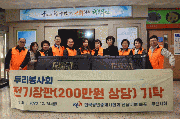 두리봉사회는 한국공인중개사협회 목포와 무안지회 회원들이 2016년 2월 창립한 봉사단체로 환경 정화 활동, 나눔 활동 등 매년 다양한 봉사활동을 펼쳐오며 지역 사회 발전에 기여하고 있다.