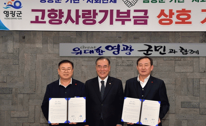 담양군과 영광군 기관·사회단체는 지난 14일 영광군청을 방문해 고향사랑기부금 상호 기부 행사를 진행했다.