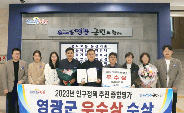 이번 평가는 전라남도 주관으로 실시한 인구정책 종합평가로서 인구 문제 극복 노력도와 정책 개선 및 추진성과, 우수사례 등을 평가해 선정했으며, 영광군은 2022년 장려상에 이어 2년 연속 수상의 쾌거를 이뤄냈다.