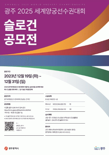 세계양궁의 메카 광주의 상징성과 대회 성공 개최 의지를 담은 슬로건을 공모한다.