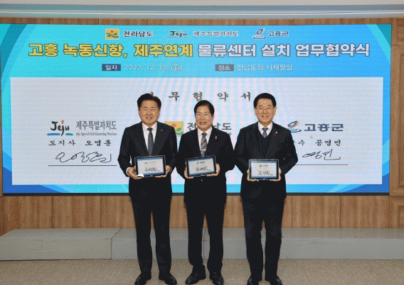 이날 협약식에는 공영민 고흥군수와 김영록 전라남도지사, 오영훈 제주특별자치도지사가 참석해 고흥 녹동신항 내 물류센터 신설을 위한 국가계획 반영과 물동량 확보, 국비 지원 건의를 위해 필요한 사항 등을 긴밀히 협력해 나가기로 했다.