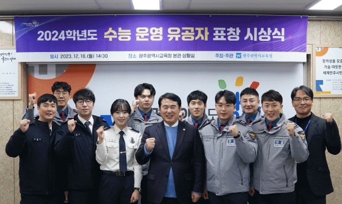 이번 행사는 지난 11월 16일 수능 시험이 광주경찰청과 광주소방본부, 광주광역시청 등 여러 유관기관의 적극적인 협조 덕분에 무사히 치러진 데 그 공을 기리고자 마련됐다. 수능이 안전하고 안정적으로 시행될 수 있도록 광주경찰청은 수능 문답지 호송, 문답지 보관소 경비, 시험장 문답지 배송, 시험장 주변 순찰 강화 등 경찰관 100여 명을 지원했다. 또 광주소방본부는 38개 시험장에 시험 동안 수험생 응급조치 및 구급 상황 대처를 위한 상주 구급대원 38여 명을 지원했다.