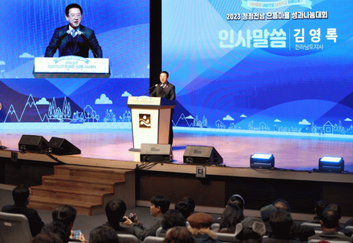 성과나눔대회는 김영록 도지사와 도의원, 시장·군수, 사회단체장, 으뜸마을 대표와 주민, 관계 공무원 등 500여 명이 참석한 가운데 으뜸마을 만들기 활동영상 상영, 우수 시군 시상 및 유공자 표창, 우수마을 사례 발표, 퍼포먼스 순으로 진행됐다.