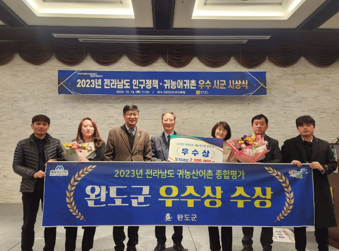 '귀농어귀촌' 종합 평가에서는 귀농어귀촌 유치 실적, 홍보 및 교육 등 9개 항목에 대한 평가가 이뤄졌고, 특히 전입 실적과 ‘22~’23년 귀농어귀촌인 우수 창업 활성화 사업 참여 실적에서 높은 점수를 받아 우수상을 수상하는 영예를 안았다.