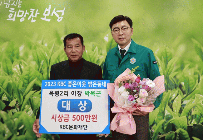 대상을 수상한 보성읍 옥평2리 박옥근 이장은 1984년부터 39년간 마을 이장으로 재직하면서 마을 주민과 지역에 대한 사명감과 봉사 정신으로 마을 주민과 협동해 △빈집 정비, △천변 꽃나무 심기·계절 꽃 식재, △보성600사업 참여 등 깨끗하고 아름다운 마을 만들기를 활동에 적극 참여하고 있다.