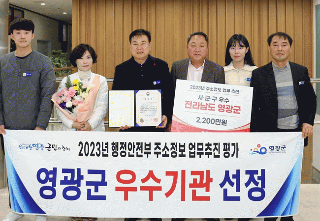 강종만 영광군수는 “이번 우수기관 선정은 군민들의 적극적인 협조와 관심으로 함께 이뤄낸 노력의 결과이며, 앞으로도 주소로 편리하고 안전한 영광을 만드는 데 최선을 다하겠다”라고 말했다.