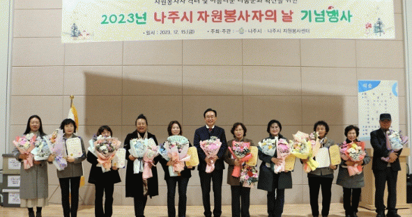 전라남도 나주시는 12월 5일 자원봉사자의 날을 기념해 최근 국립나주숲체원 대강당에서 ‘2023년 자원봉사자의 날 기념행사’를 개최했다고 19일 밝혔다.