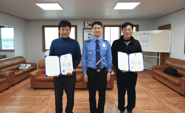 완도해경에 따르면 박기정 완도해양경찰서장은 지난 19일 오전 10시 무렵 득암청년회관을 방문해 해상 추락 차량 내 인명을 구조한 약산 주민 차승복(65세), 임철웅(58세) 씨에게 감사장을 수여했다.